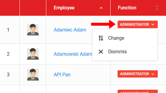 Pro přidání role uživateli klikněte na možnost "přidat roli" v pravém menu (poslední sloupec) u zaměstnance. Pamatujte, že uživatel může mít současně několik klubových rolí, ale vždy bude jako aktivní považována role s nejvyšší úrovní oprávnění. To znamená, že pokud budete mít např. role koordinátora a účetního, pak i přesto, že role účetního je určena pro finanční moduly, protože koordinátor má také přístup k těmto modulům a je výše v hierarchii rolí, při pokusu o vstup do modulu příspěvků se ve výchozím nastavení aktivuje role koordinátora.